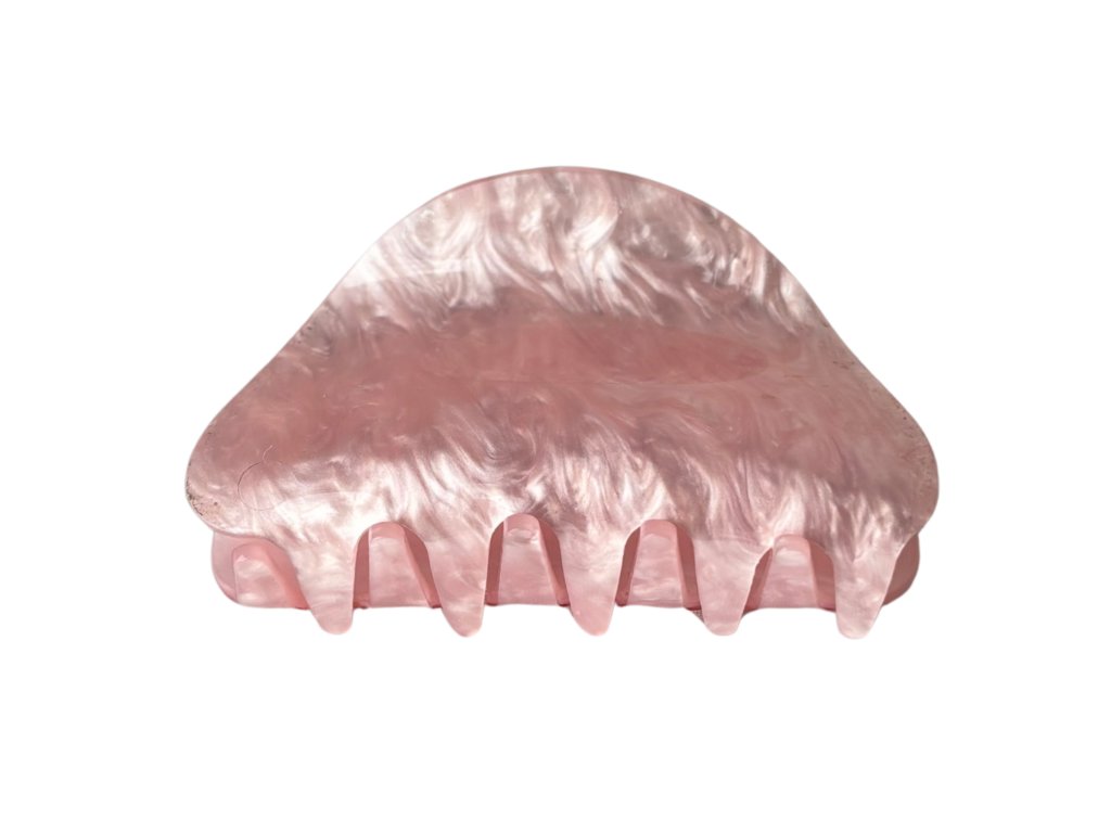 Blush Archive má půlkruhový tvar, jiný než ostatní, záměrně. Jemný růžový odstín s perleťovým vzorem pro objemné účesy.