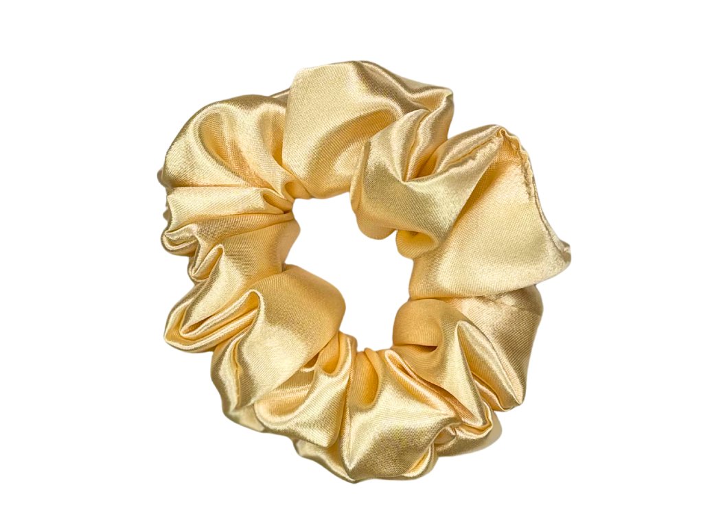 Saténová scrunchie gumička, česká ruční výroba. Širší varianta. Chrání vlasy před lámáním, třením a otlaky. Vhodná pro všechny typy vlasů.
