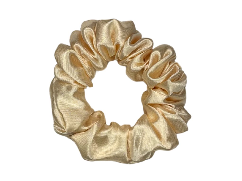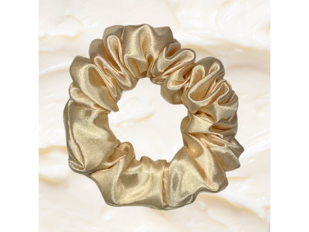 Saténová scrunchie gumička, česká ruční výroba. Užší varianta. Chrání vlasy před lámáním, třením a otlaky. Vhodná pro jemnější vlasy.